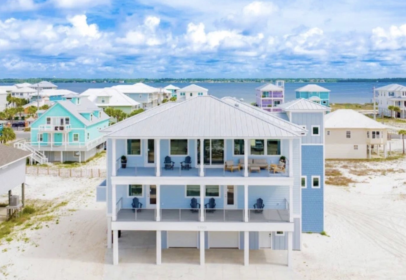 Designed specifically as a large group vacation rental, Barefoot BnB comfortably sleeps up to 22 guests. You will be captivated by sweeping, panoramic Gulf-Facing and Sound views. Unwind in our private heated and chilled pool, gather around the outdoor fire pit, and prepare meals in the fully stocked gourmet kitchen.